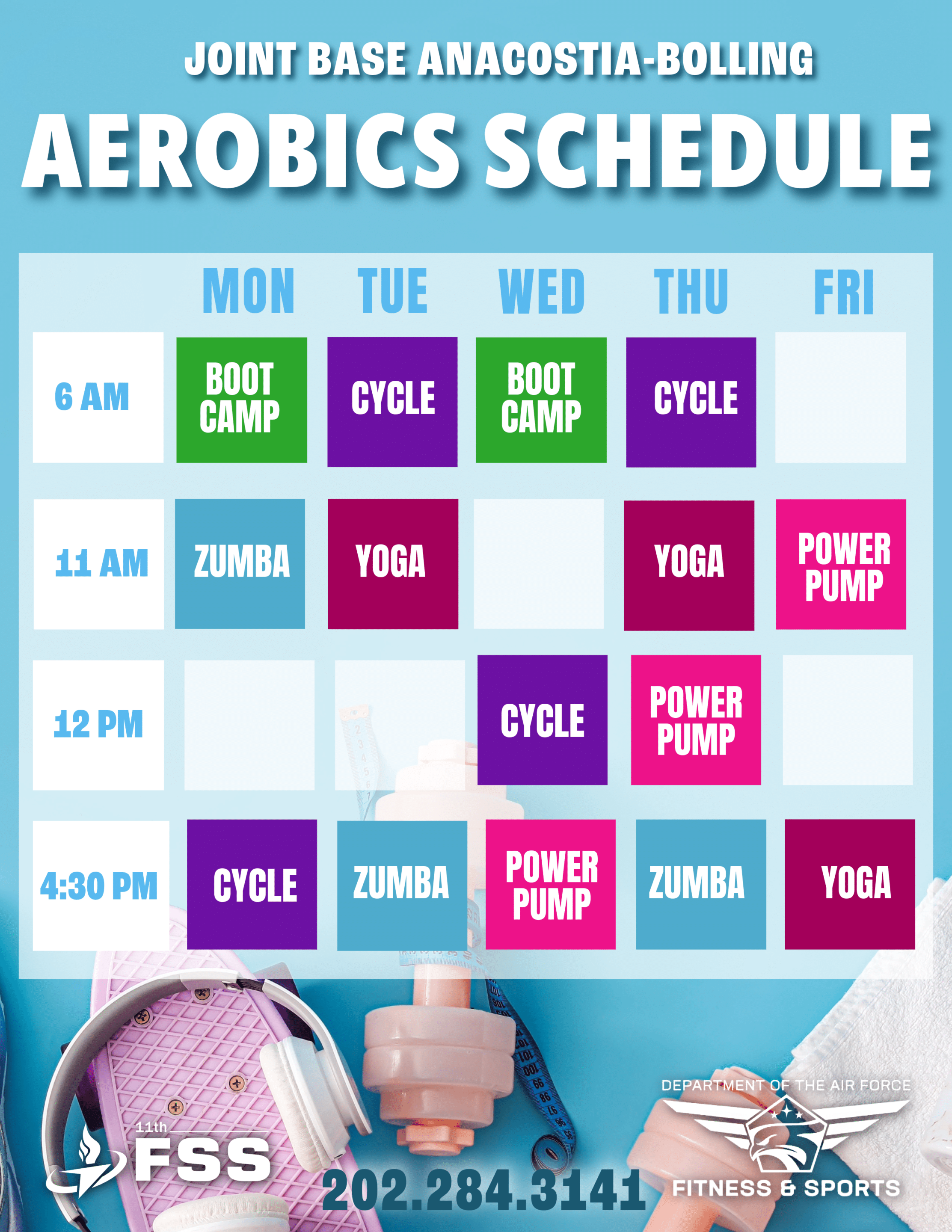 The Aerobic Center offers a variety of exercise classes that help strengthen the heart and lungs while burning calories at a high rate. The Aerobic Center is also equipped with cardio equipment to include bikes, treadmills, ellipticals and steppers.