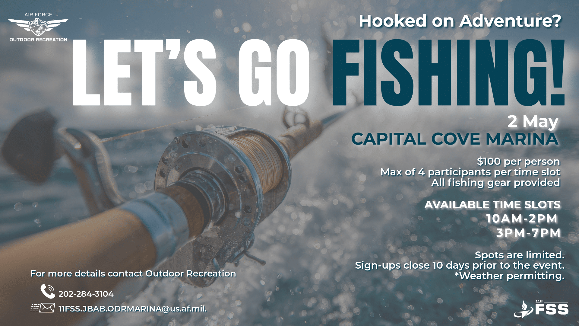 Get hooked on adventure with our Let’s Go Fishing trip at Capital Cove Marina! Whether you’re a beginner or experienced angler, enjoy a guided fishing experience with all gear provided. With limited spots and small group sizes, it’s the perfect way to relax on the water and reel in a great time—sign up early to secure your spot!