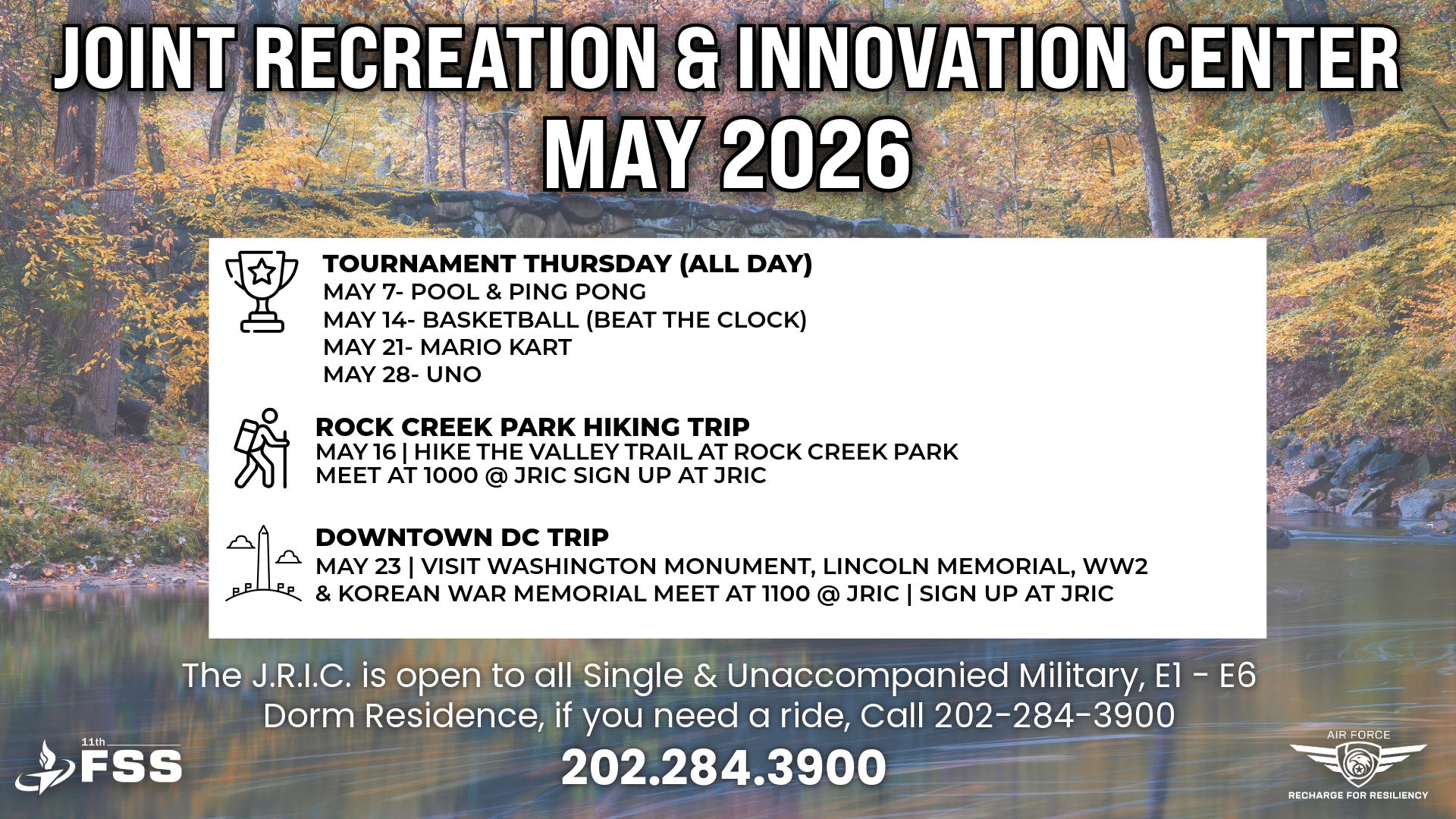 The Joint Recreation & Innovation Center is your go-to spot for the ultimate recreational experience. We offer free and reduced-priced programs for military E1-E6 single or unaccompanied personnel.