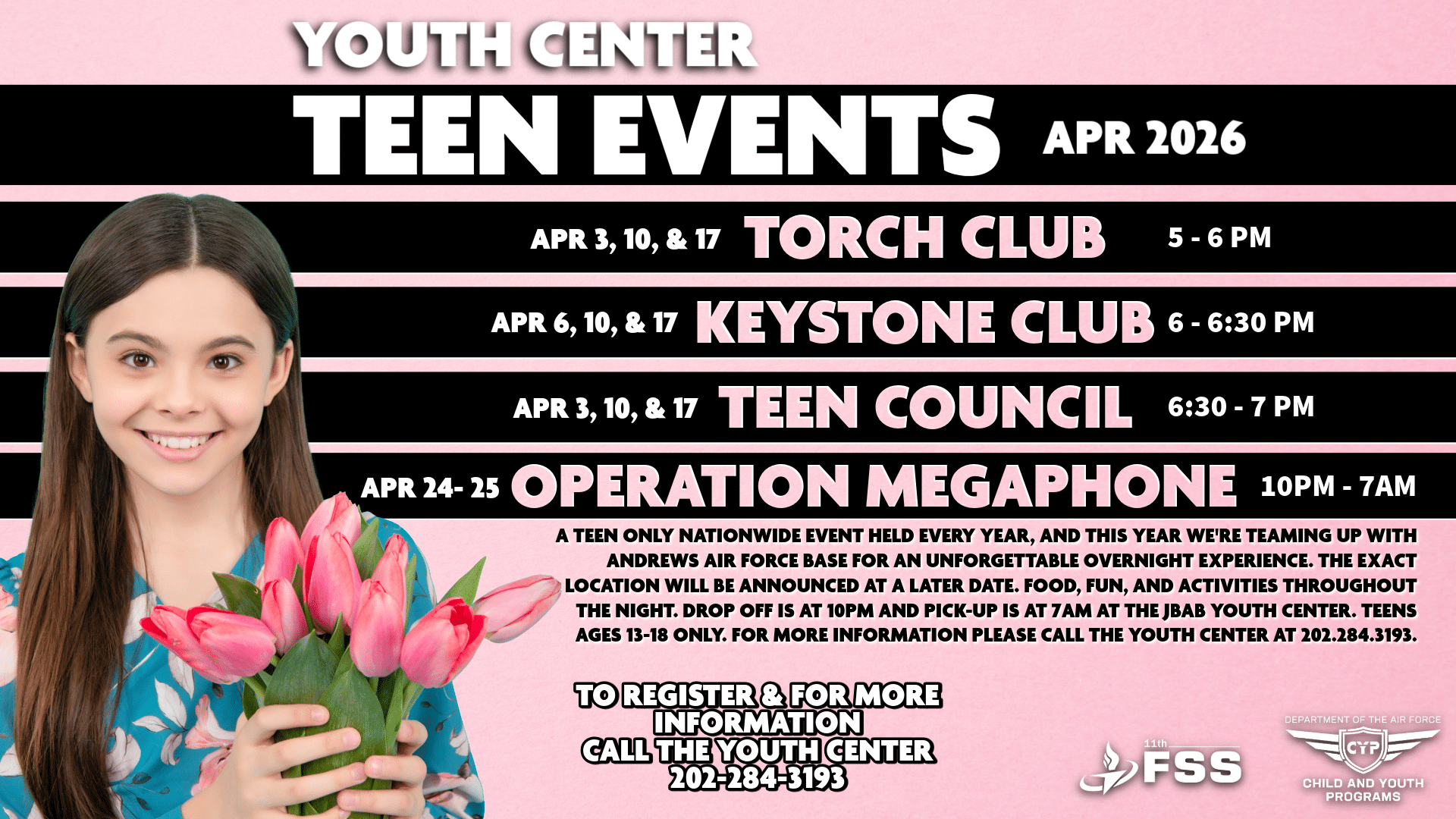The Torch Club helps develop future members with leadership and character development. The Torch Flames have done several community service projects that benefit the JBAB community. Register at the Youth Center.